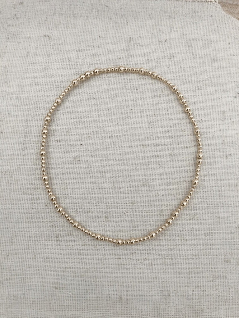 Made with 14K Gold-Filled beads and a durable elastic for a comfortable stretch to roll on and off your ankle OR choose to style up with our clasp finish and findings