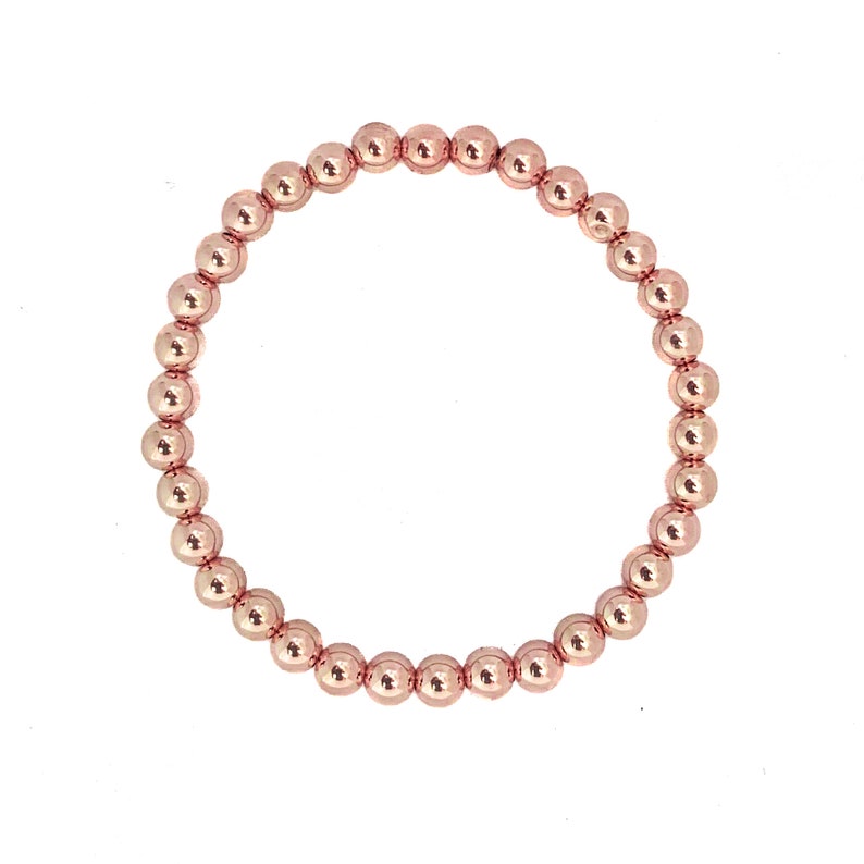 Made with 14K Rose Gold-Filled beads and a durable elastic for a comfortable stretch to roll on and off your wrist OR choose to style up with our clasp finish and findings