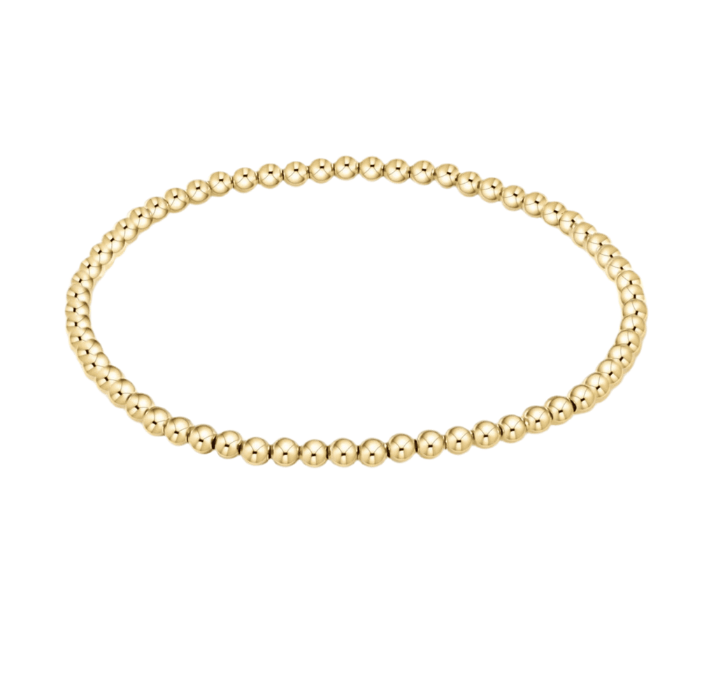 Made with 14K Gold-Filled beads and a durable elastic for a comfortable stretch to roll on and off your wrist OR choose to style up with our clasp finish and findings