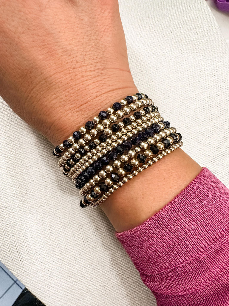 Made with quality crystal beads and a durable elastic for a comfortable stretch to roll on and off your wrist OR choose to style up with our clasp finish and findings