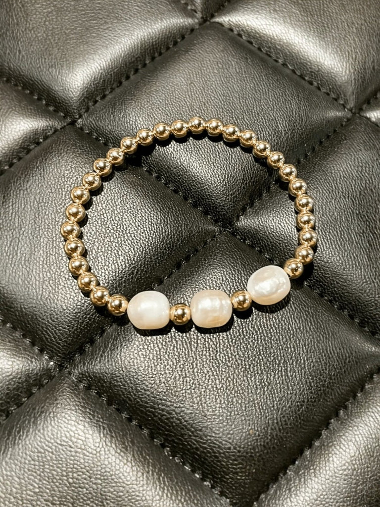 Made with 14K Gold-Filled beads and a durable elastic for a comfortable stretch to roll on and off your wrist OR choose to style up with our clasp finish and findings