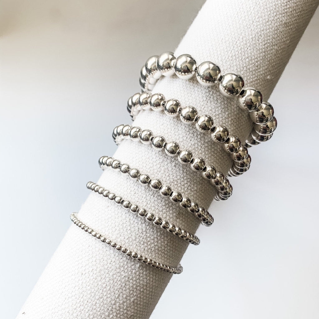 Made with Sterling Silver beads and a durable elastic for a comfortable stretch to roll on and off your wrist OR choose to style up with our clasp finish and findings