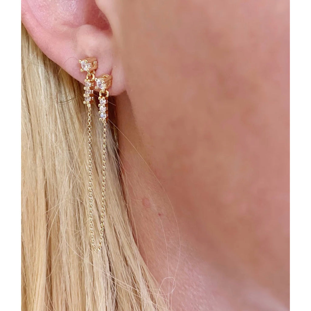 Two zirconia tied by a roll link chain gives you an elegant punk style to your ear stacking. You must have two piercings in each ear to wear these earrings