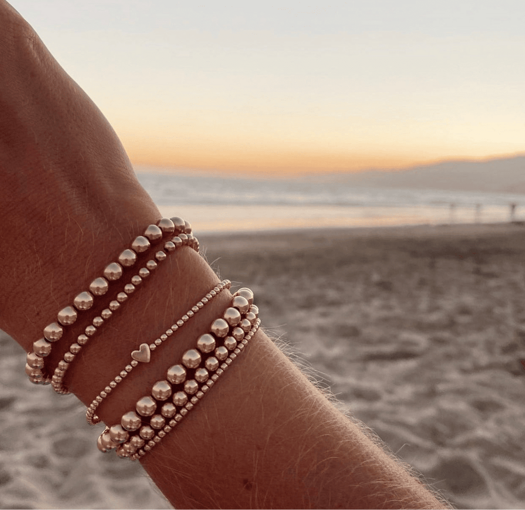 Bella Signature 3mm Gold Beaded Bracelet with Heart charm