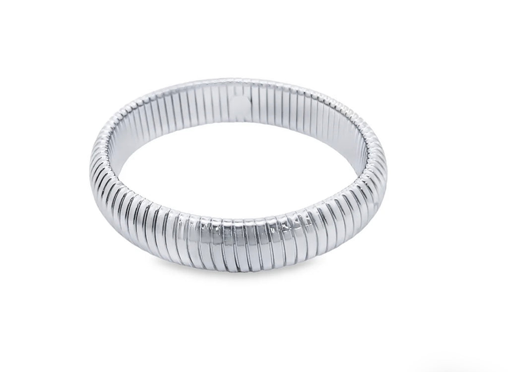 Scarlett - Single Snake link Bangle, Wide Coil Styled Flexible Ribbed Designed Bracelet